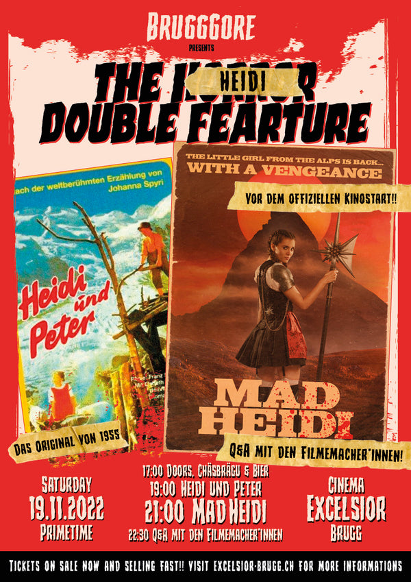 19.11.22 - 19.11.22 | Cinema Excelsior, Brugg AG, SwitzerlandA Swissploitation double feature with Heidi & Peter (1955) and Mad Heidi (2022).